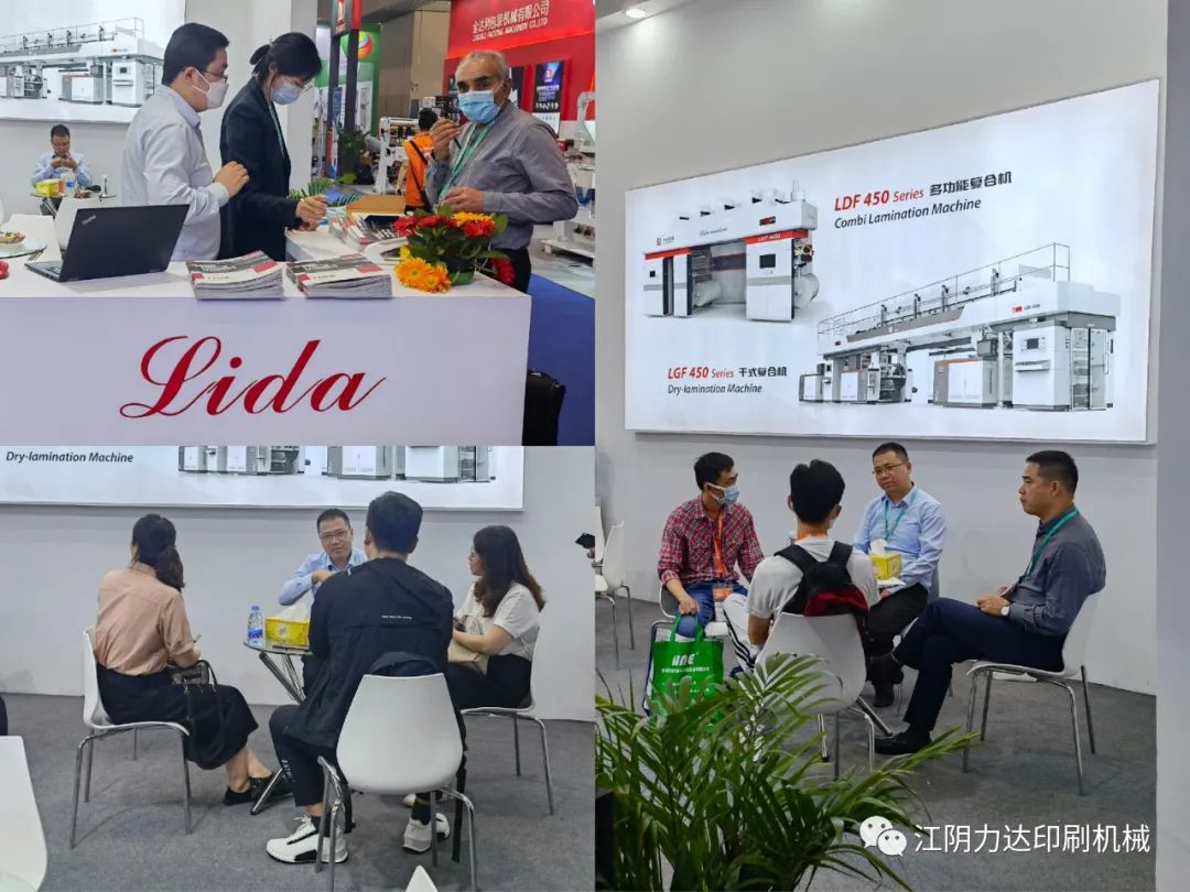 在“碳中和”、“碳達峰”、“限塑令”升級下的橡塑行業,發展循環經濟、節能減排等正當其時。這不僅僅是各界熱議的話題與挑戰,更暗藏著巨大的新市場、新機遇,眾多新能源、5G、新材料等企業聞訊而來。開展四天來,許多觀眾紛紛來到展臺進行商務洽談,其中公司最新研發的LDF 450型多功能復合機以及LGF 450型干式復合機收到了客戶的廣泛關注,咨詢客商不斷。該機型最高機械速度為450m/min,支持無溶劑、網線輥、半柔版、定點涂布等多種涂布方式,實現一機多用,為客戶節約更多的成本,實現更高的經濟效益。
